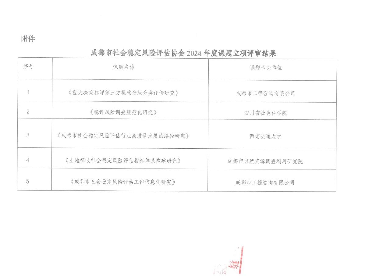 成都市社会稳定风险评估协会2024年度课题立项评审结果公示