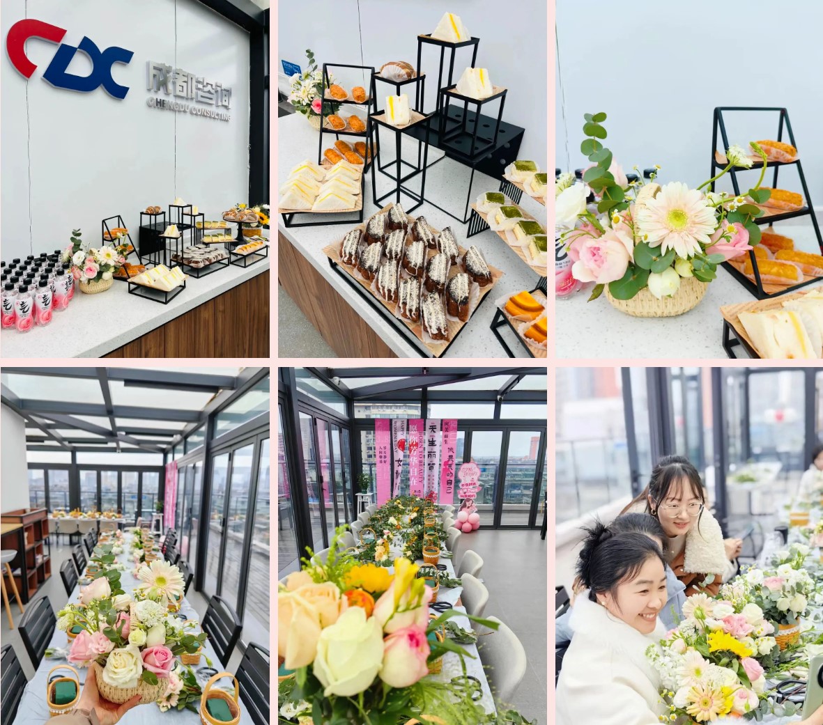 在花艺创作的同时,精致的甜品和饮品也为活动增添了一份甜蜜。大家一边品尝美味的蛋糕、马卡龙和咖啡,一边与同事们畅聊生活与工作,现场气氛轻松愉快,欢声笑语不断。